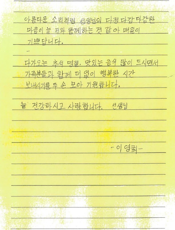 ¢º ³»¿ë»çȸÀû, °æÁ¦Àû »óȲÀ¸·Î °íÅëÀ» °Þ´Â Àú¼Òµæ ¾î¸£½Åµé »ýȰ ¾ÈÁ¤ ¹× Á¤¼­Àû ¾ÈÁ¤ Áö¿øÀ¸·Î »ç¶ûÀÕ´Â ÀüÈ­ ³ª´®Ãµ»ç¿Í ¸ÅĪµÇ¾î ÀÖ´Â ¾î¸£½Åµé¿¡°Ô ¼ÕÆíÁö¿Í, Ãß¼®Å°Æ®¸¦ Àü´ÞÇØ µå·È½À´Ï´Ù. ¹Ð¾Ëº¹ÁöÀç´Ü°ú ½ÅÇÑÀºÇà ³ª´®Ãµ»ç´Ô¿¡°Ô ´Ù½ÃÇѹø °¨»ç µå¸³´Ï´Ù.